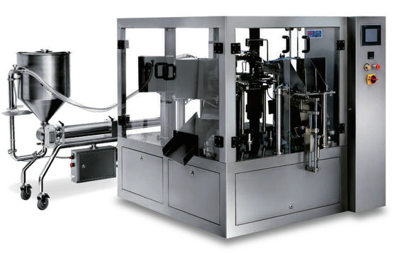 Supporto rotatorio automatico di Premade sulla macchina di rifornimento liquida di grande viscosità della borsa del becco della borsa della chiusura lampo di Doypack della borsa